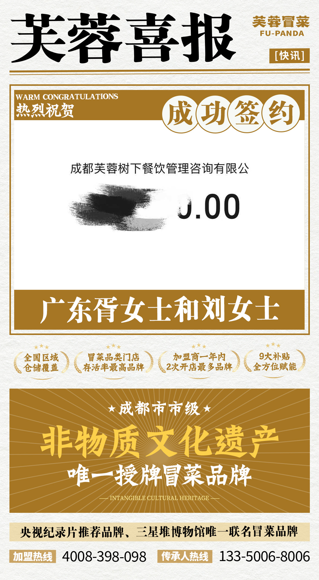 欢迎王姐与家人加入芙蓉冒菜大家庭!我们愿以十年沉淀的体系,托起您。