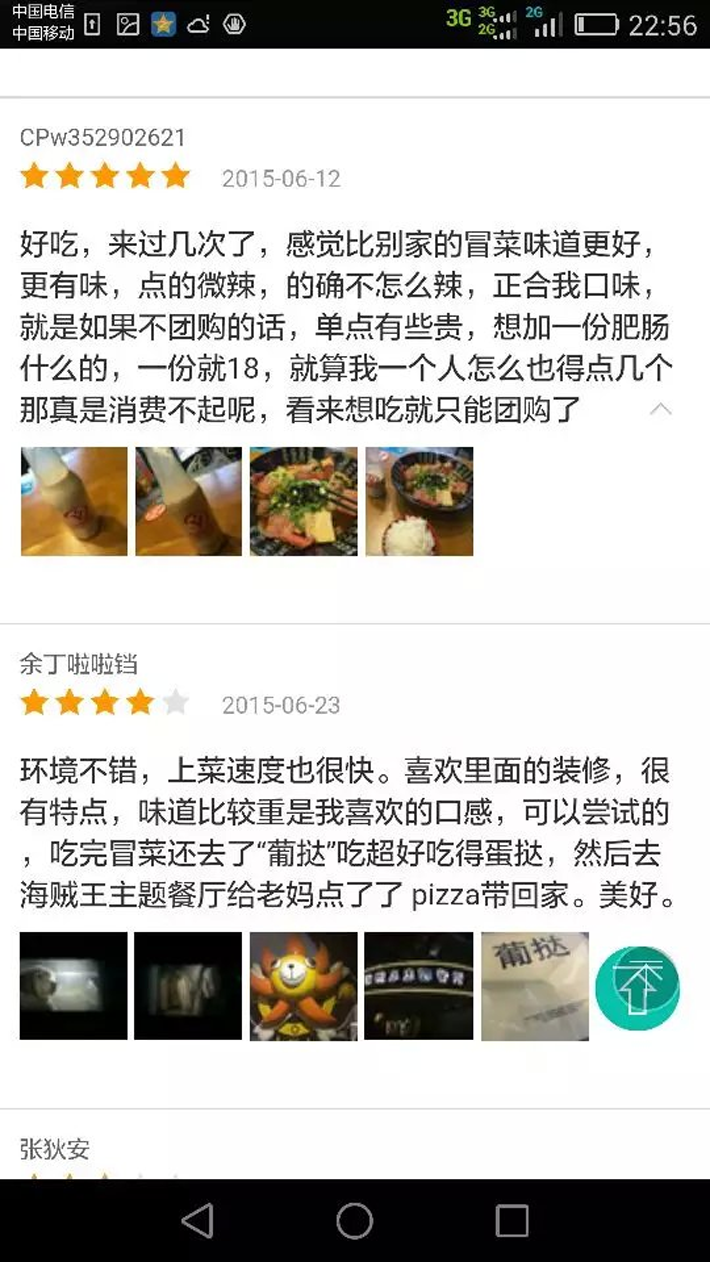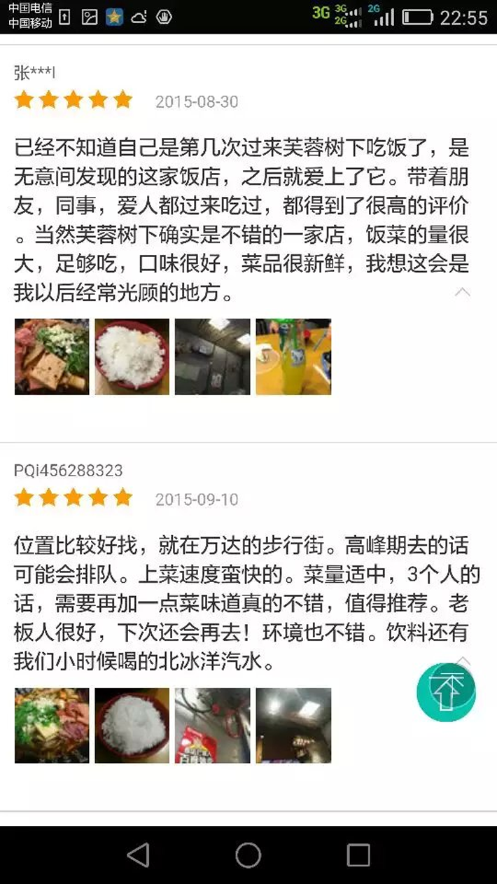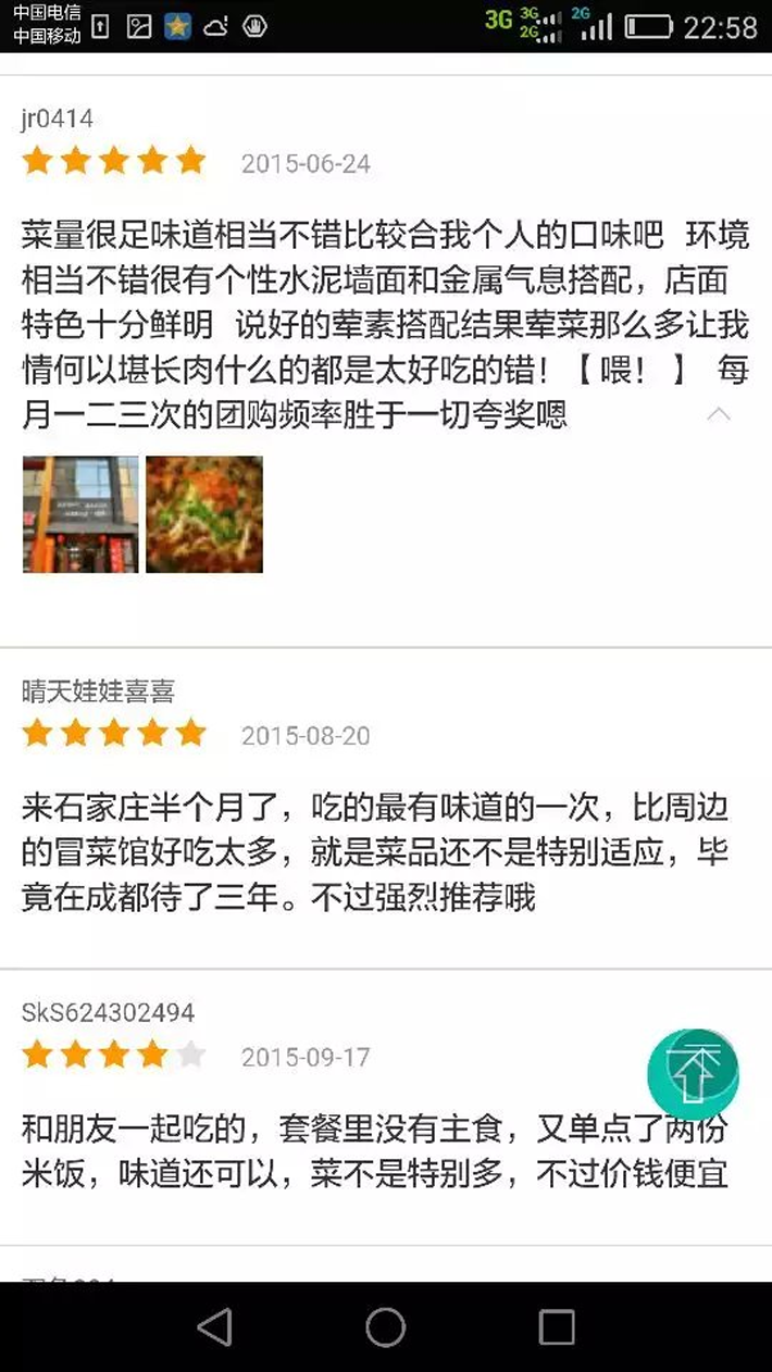 芙蓉树下冒菜石家庄万达旗舰店,截止2015年9月25日556条评论中摘取的一部分…