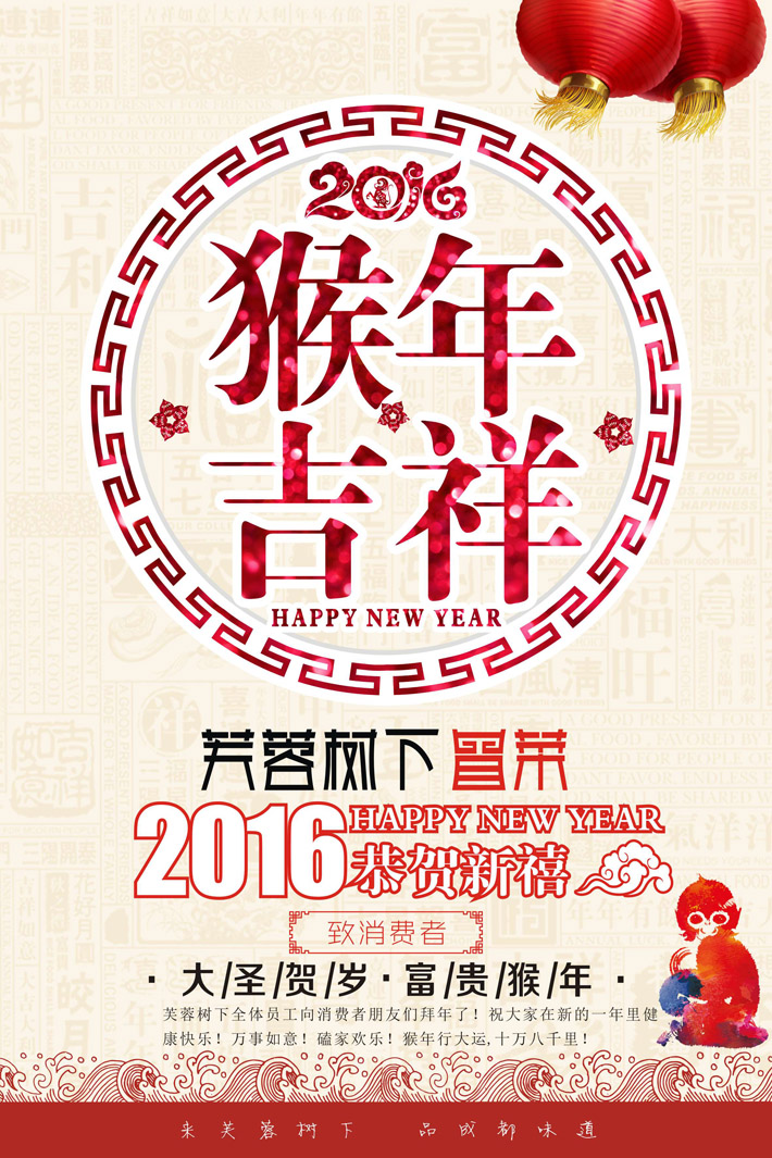 芙蓉树下全体员工向所有合作伙伴拜年了!祝大家在新的一年里健康快乐!万事如意!阖家欢乐!猴年行大运,十万八千里!