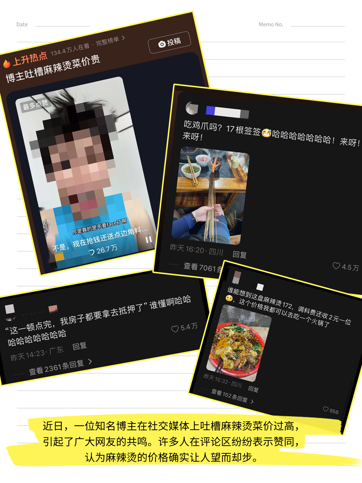 近日,一位知名博主在社交媒体上吐槽麻辣烫菜价过高,引起了广大网友的共鸣。许多人在评论区纷纷表示赞同,认为麻辣烫的价格确实让人望而却步。