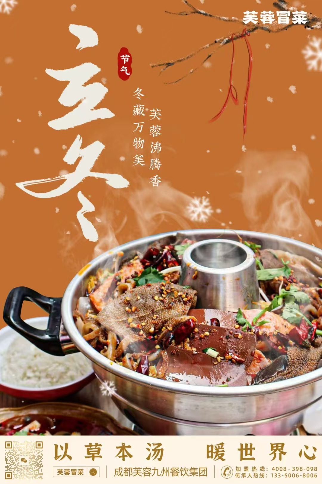 立冬万物添冬韵,美好藏心间。北风渐起,气温骤减。沸腾烟火气,芙蓉冒菜。以草本汤,暖世界心。